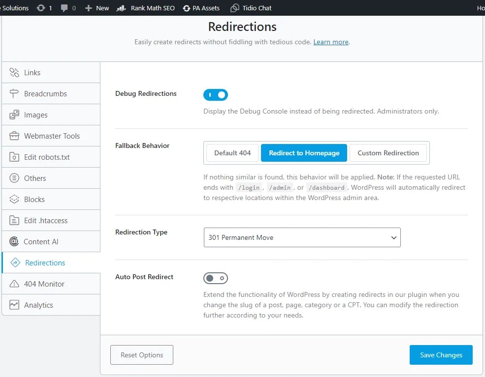 How to Use It: First, in the Rank Math menu, go to ‘Redirections,’ where you can create and manage all your site’s redirects. From there, you can set up rules and conditions for each redirect.